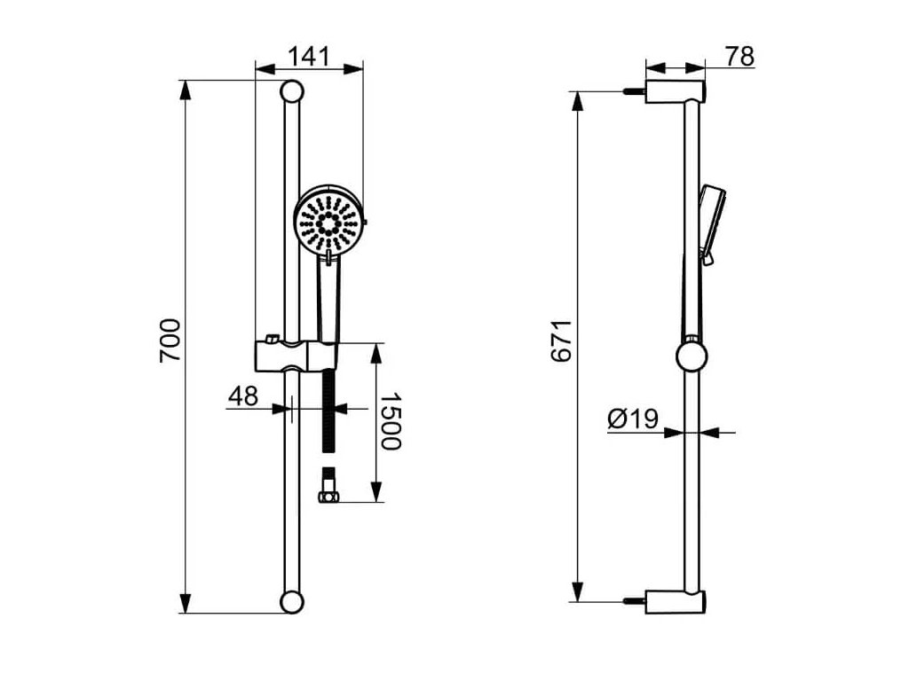 • sprchová hadica s dĺžkou 1500 mm