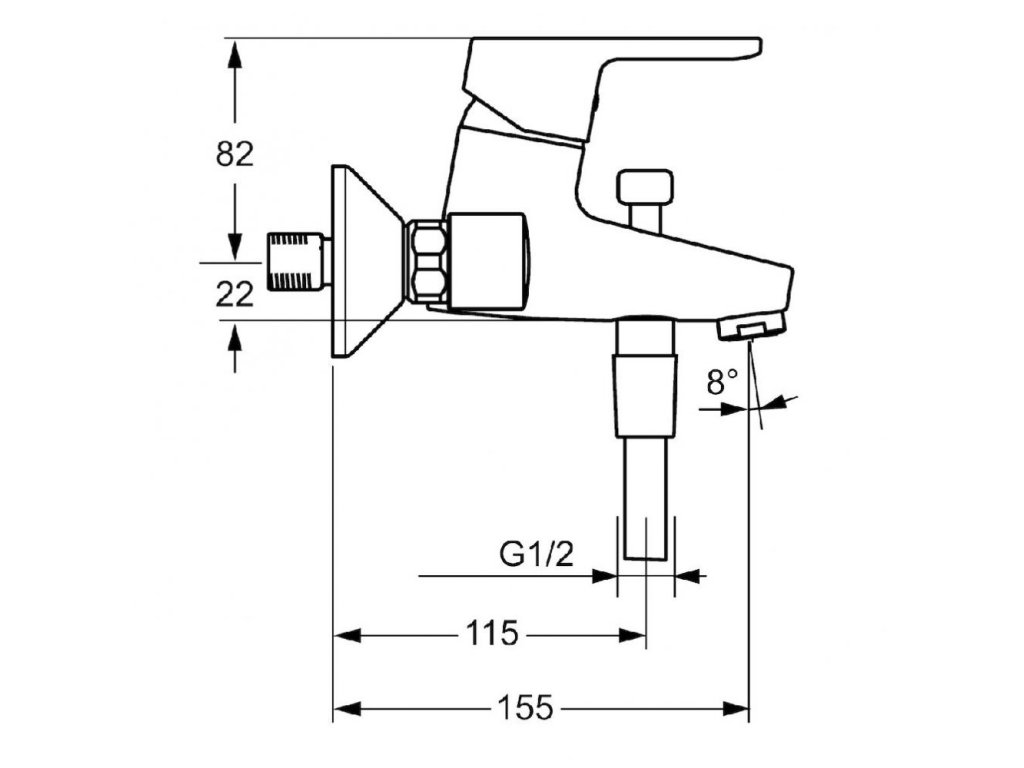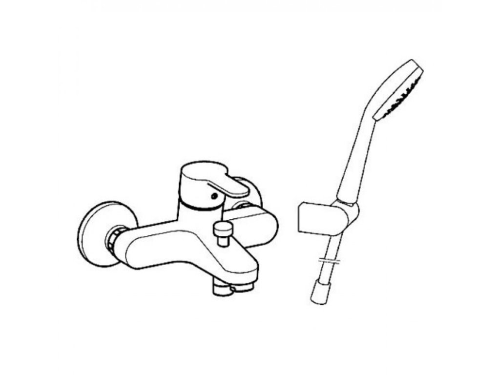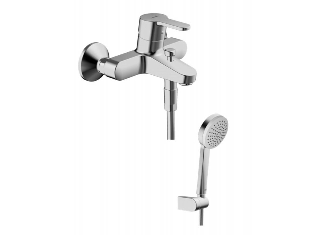 HANSAPRIMO - páková vaňová vodovodná batéria s nástennou montážou. Dodávaná je aj s ručnou sprchou, držiakom ručnej sprchy a sprchovou hadicou dlhou 1250mm.