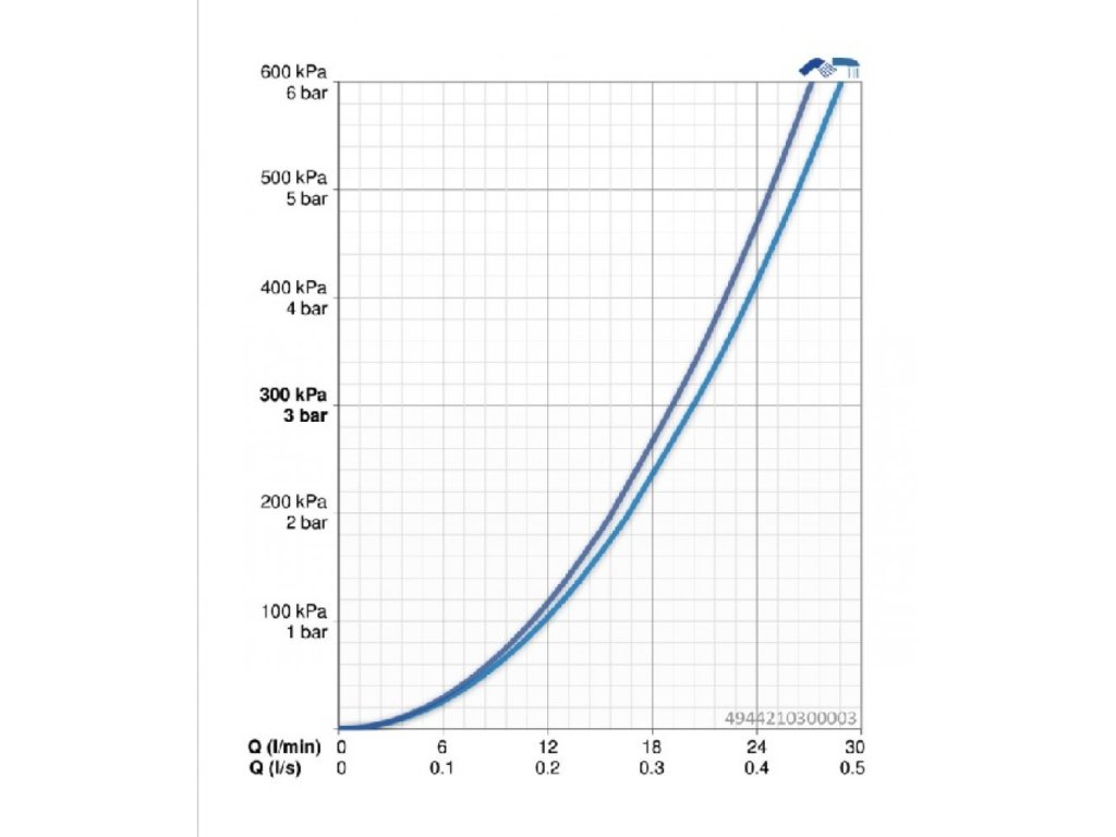 Prietok meraný pri hydraulickom tlaku 3 bar (vaňa/sprcha): 20,4l/19,2l/min.