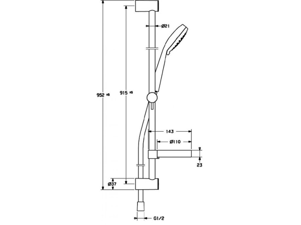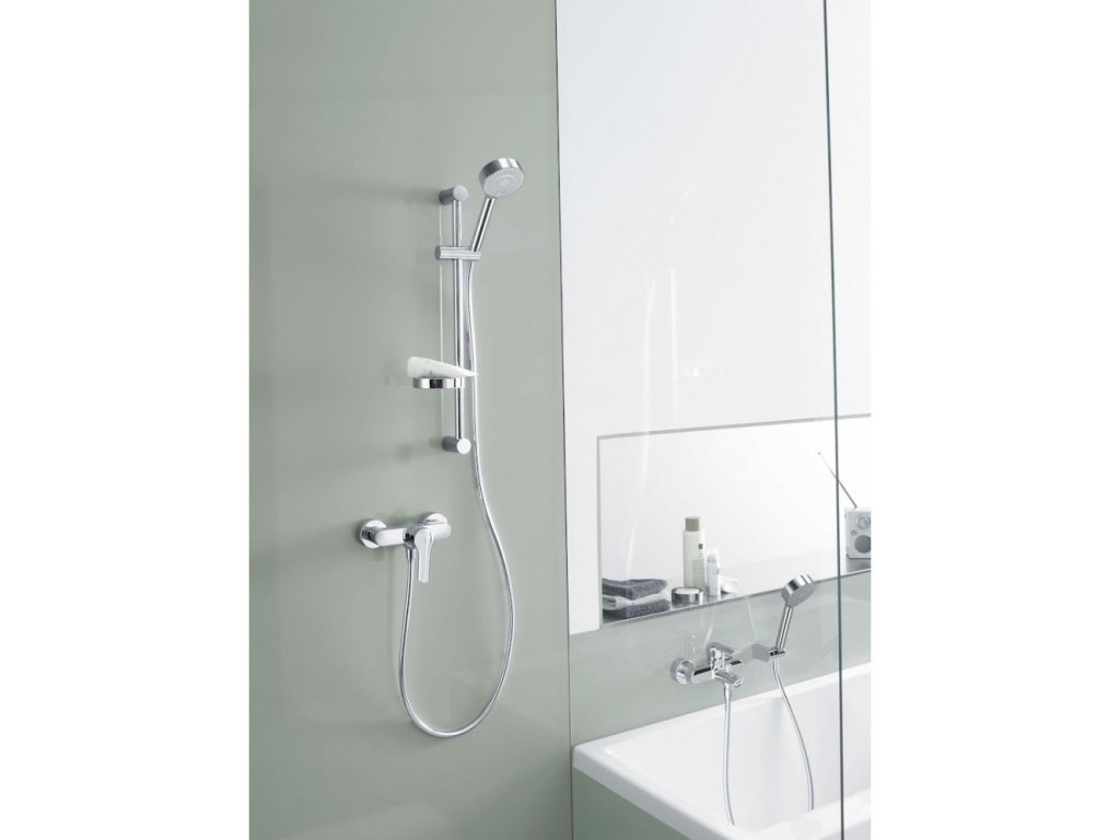 • sprchová tyč s nastaviteľnou roztečou úchytov, dĺžka 915 mm.