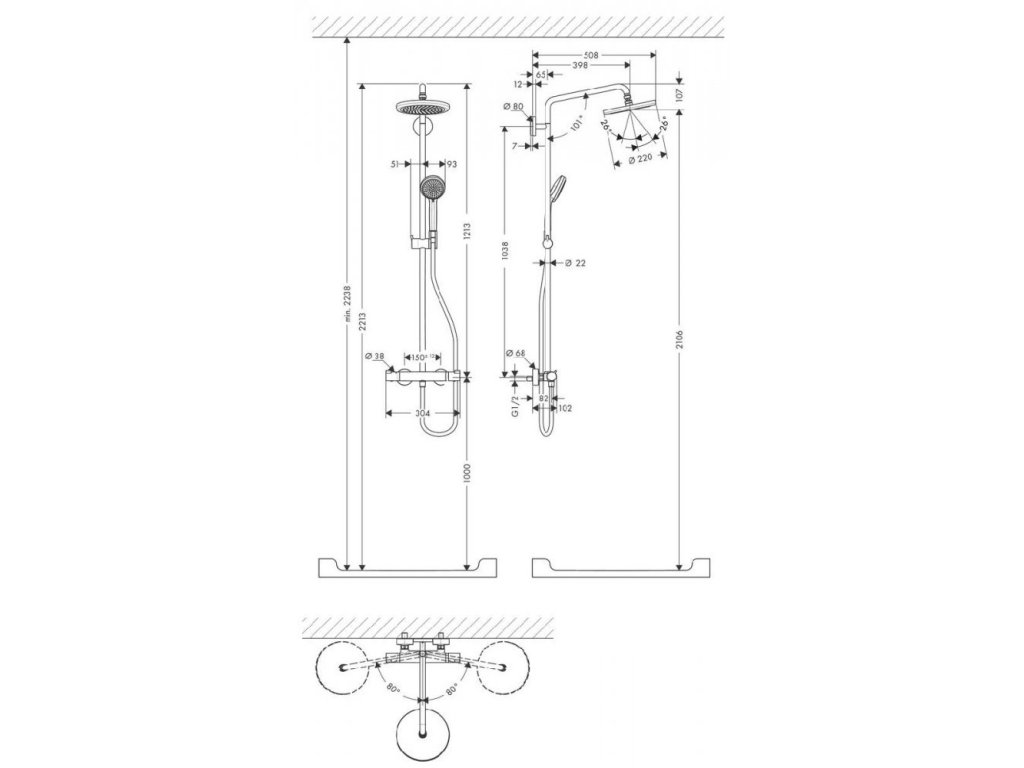• hlavová sprcha okrúhla Croma 220: d220mm. S guľovým kĺbom s nastaviteľným uhlom. Druh prúdu: RainAir.