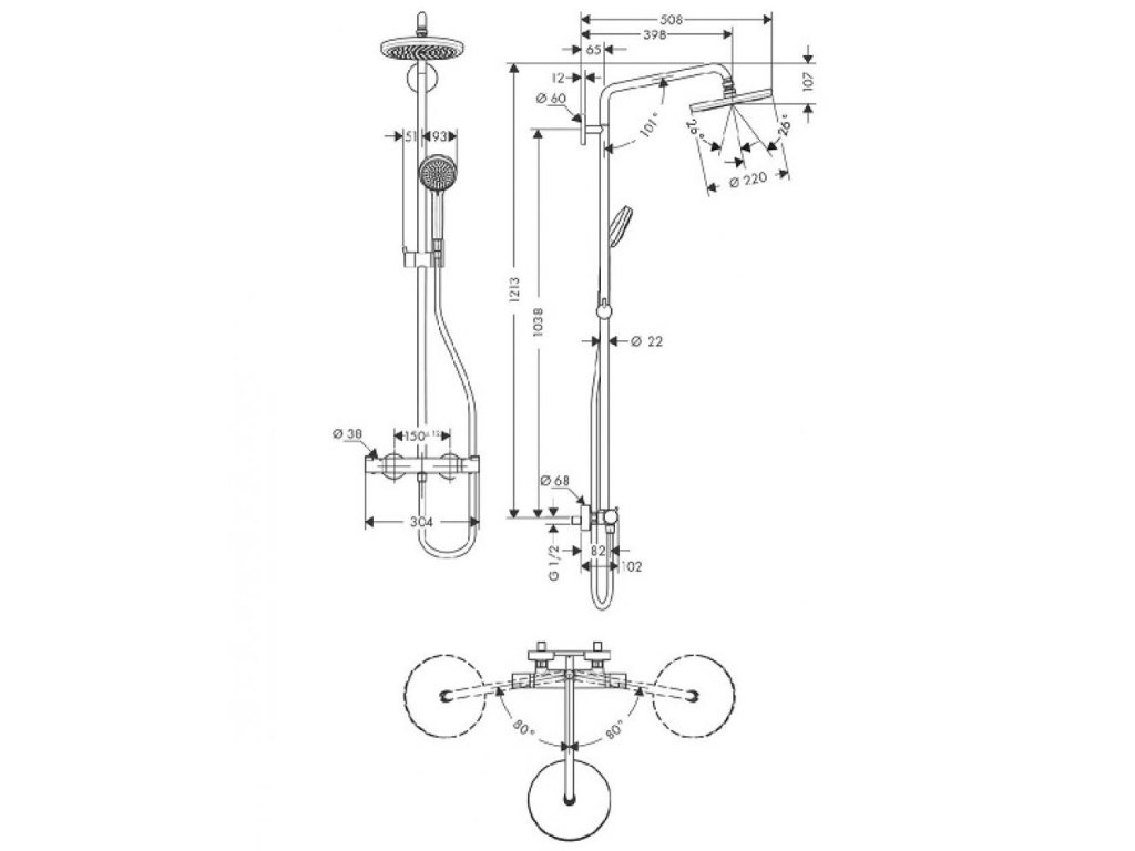 Sprchový systém CROMA s termostatom Ecostat Comfort, hlavica 220mm