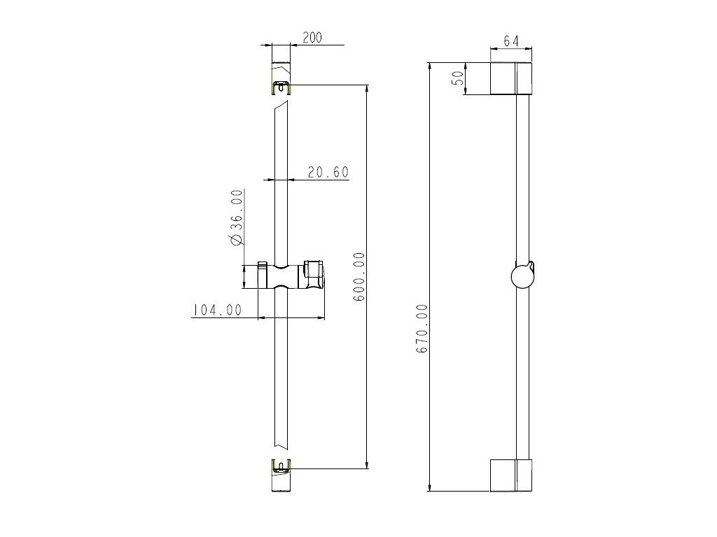 Sprchová tyč HERZ, dĺžka 670mm, čierna