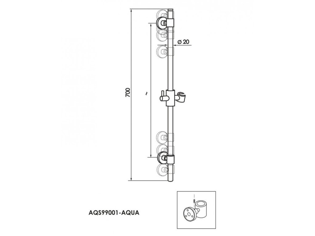 Sprchová tyč AQUA kovová, dĺžka 700mm