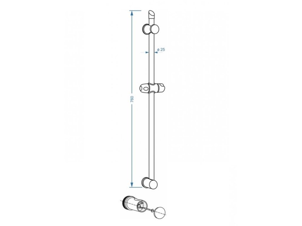 Plastová sprchová tyč s posuvným plastovým držiakom ručnej sprchy. Rozstup úchytov na stenu je nastaviteľný, jedna príchytka je posuvná.Dĺžka tyče je 76cm. Priemer tyče je 25mm.