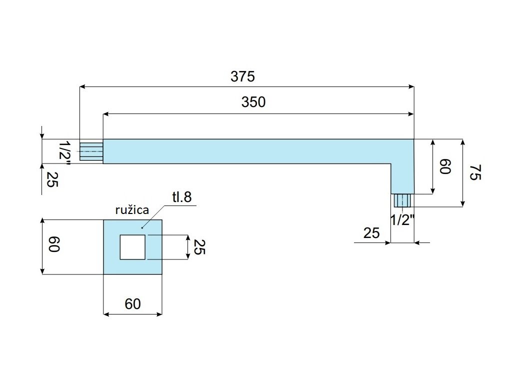 Sprchové rameno nástenné FIRENZE, chróm - dĺžka 350mm