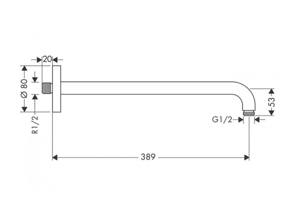 Sprchové rameno s dĺžkou 389mm s kruhovou krytkou. Montáž na stenu.