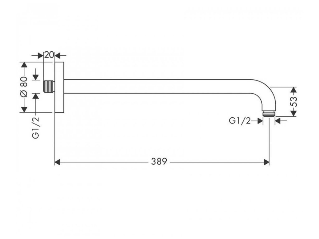 Sprchové rameno s dĺžkou 389 mm s kruhovou krytkou. Montáž na stenu.