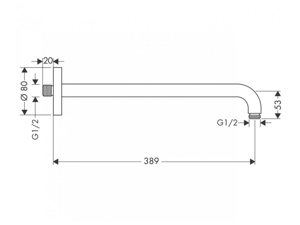 Sprchové rameno s dĺžkou 389 mm s kruhovou krytkou. Montáž na stenu.