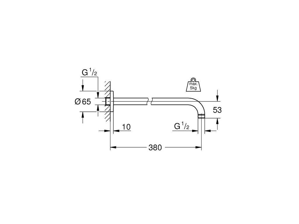 Sprchové ramienko Rainshower značky Grohe, s okrúhlou rozetou, určené pre všetky hlavové sprchy Rainshower (okrem Rainshower 400 mm).