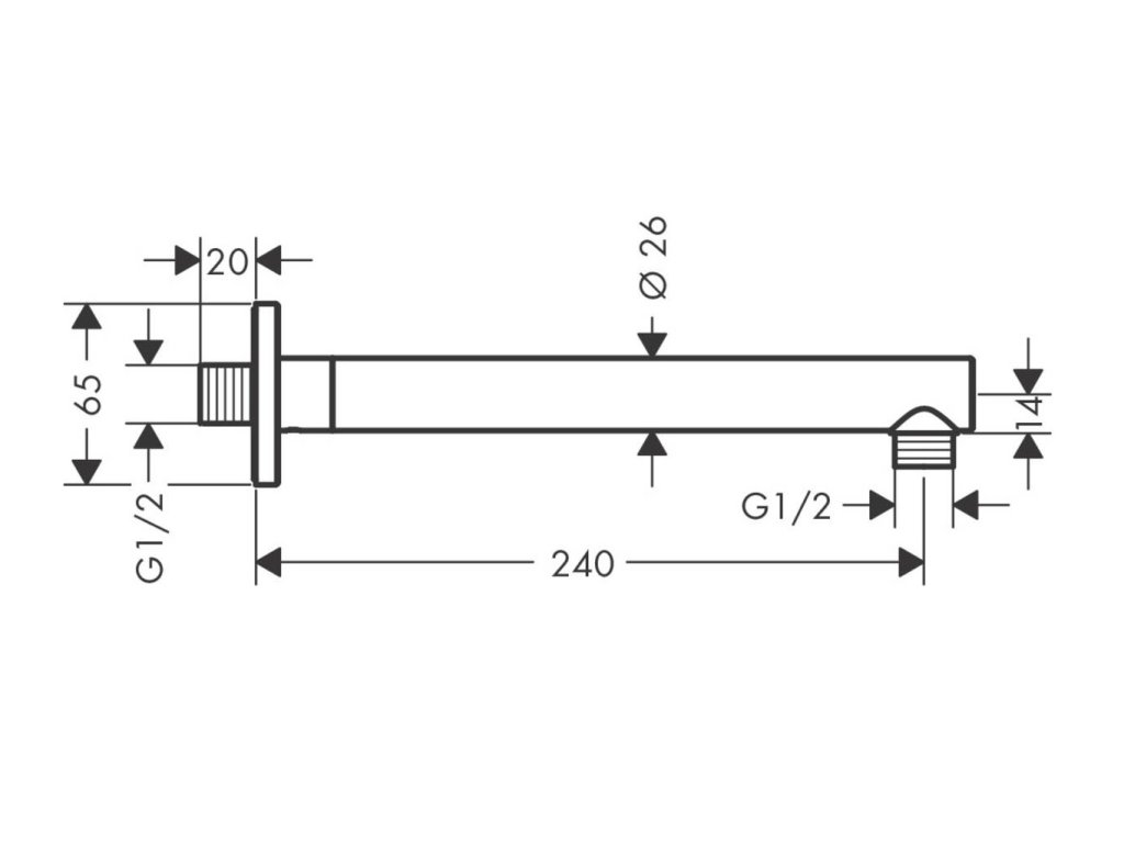 Sprchové rameno Vernis Shape značky Hansgrohe, s dĺžkou 240 mm. Montáž na stenu.