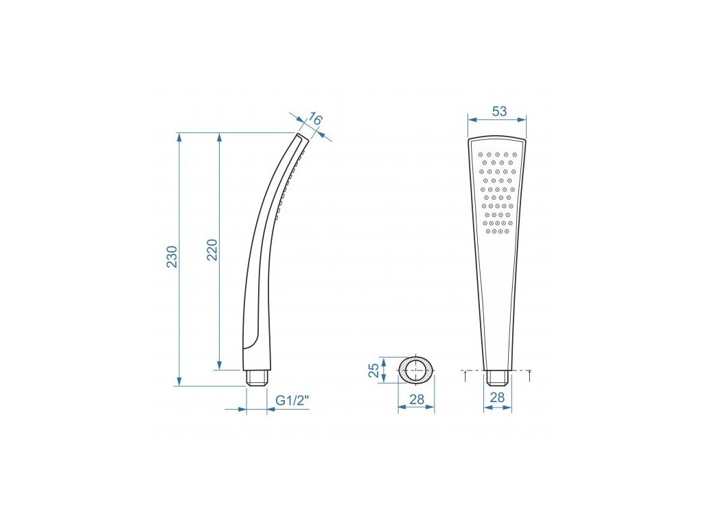 Sprchový set skladajúci sa z 1-polohovej ručnej sprchy, kovovej sprchovej hadice dĺžky 150cm a plastového držiaka ručnej sprchy.