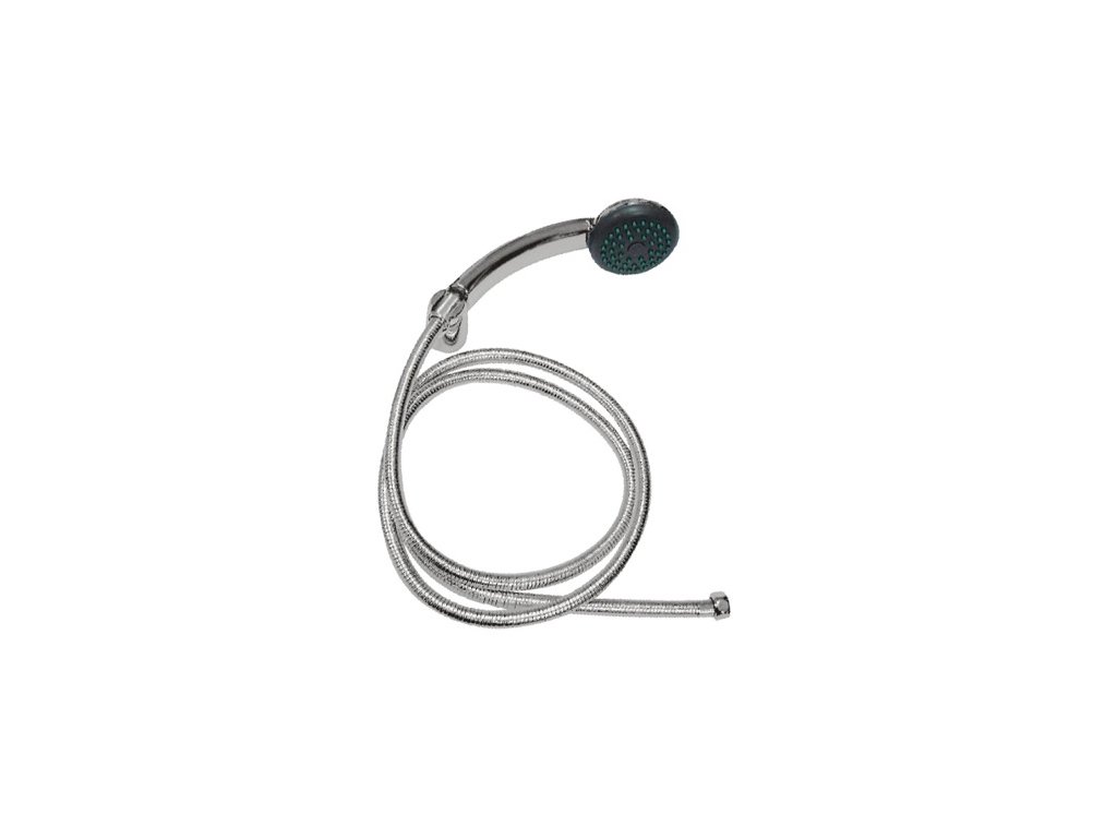 Sprchový set skladajúci sa z 1-polohovej ručnej sprchy, kovovej sprchovej hadice dĺžky 150cm a plastového držiaka ručnej sprchy.