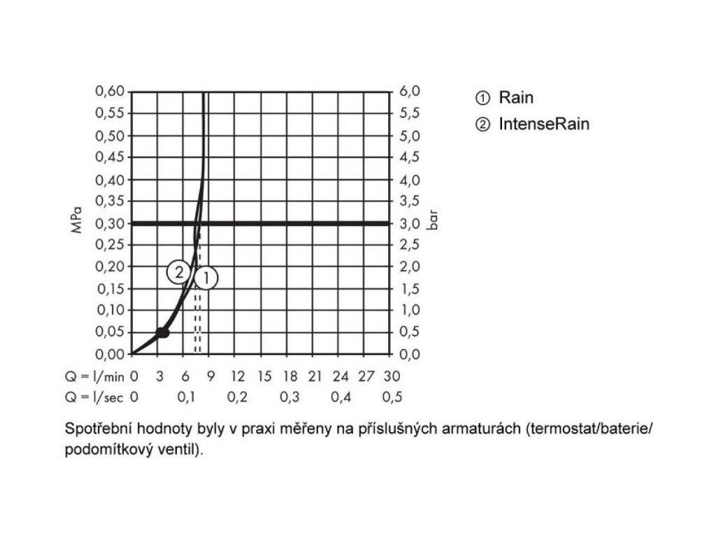 • ručná sprcha 2-polohová. Otočením koncovky možno prepínať 2 druhy prúdu: Rain, IntenseRain. Veľkosť sprchového modulu: 100 mm.