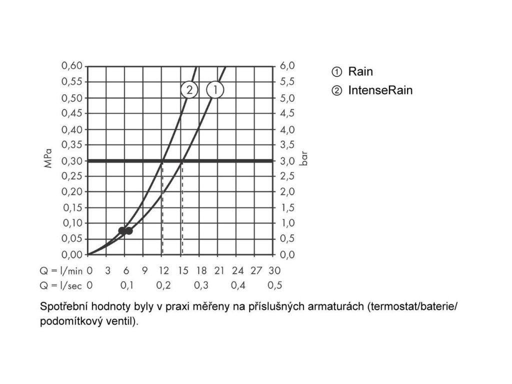 • 2-polohová ručná sprcha Vario - rozmer 100mm, prepínanie druhov prúdov Rain a IntenseRain otočením disku vodných lúčov