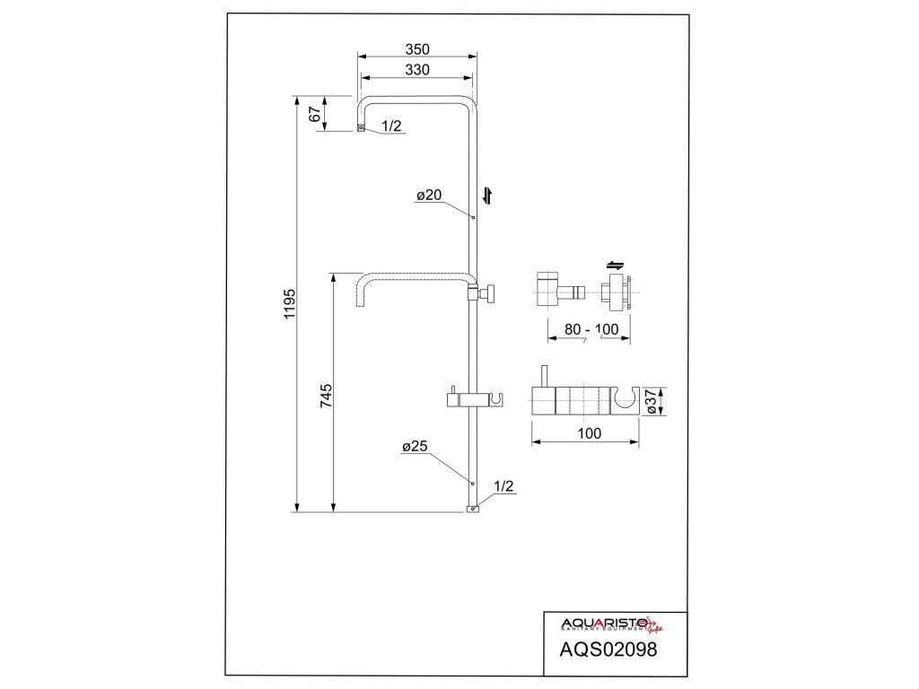 • teleskopická sprchová tyč TEVERE, mosadzná - dĺžka 700-1200 mm s posuvným držiakom ručnej sprchy-jazdcom, vyrobeným z mosadze;