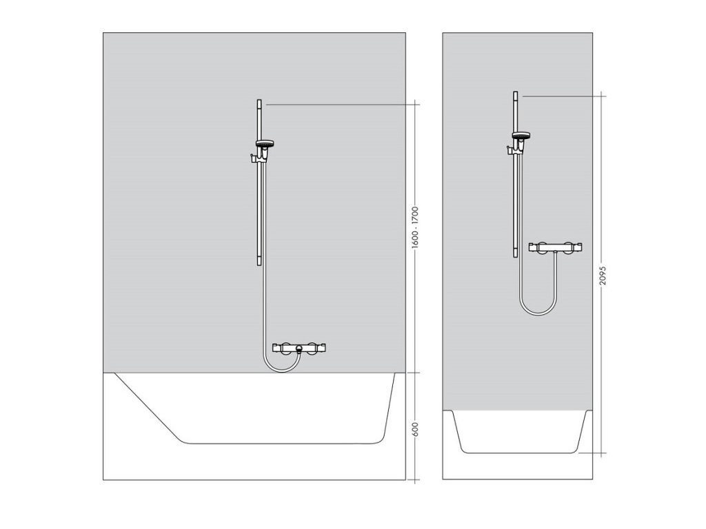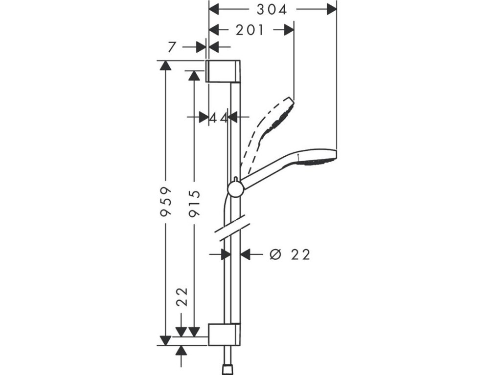 • sprchová tyč - 900mm, s okrúhlym profilom s priemerom 22 mm
