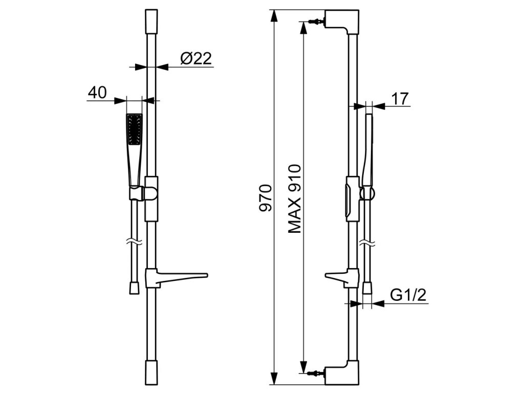 • sprchová tyč s nastaviteľným rozstupom úchytov