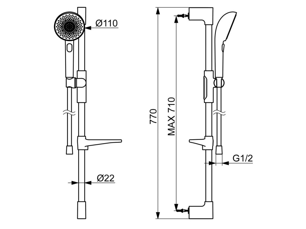 • sprchová tyč s nastaviteľným rozstupom úchytov