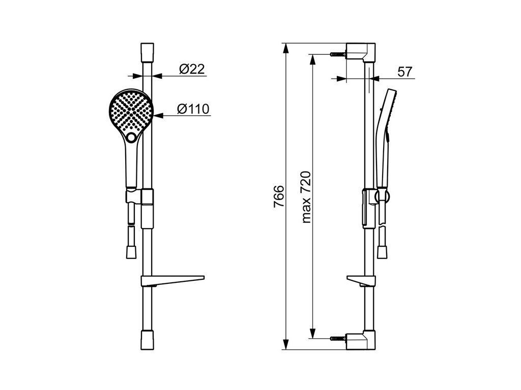 • sprchová tyč s nastaviteľným rozstupom úchytov, dĺžka 915mm;