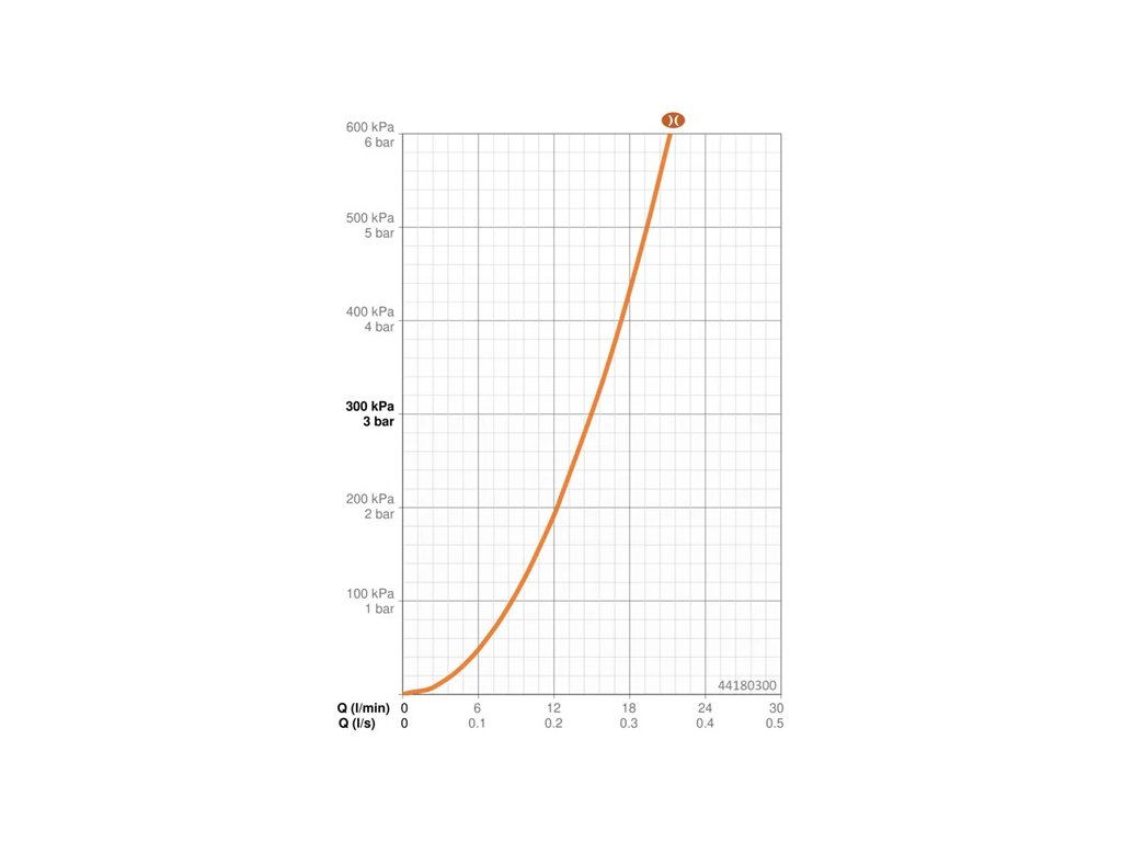 Prietok pri tlaku 3 bary: 12 l/min. Prietok pri tlaku 3 bary (s ovládačom prietoku): 12 l/min.