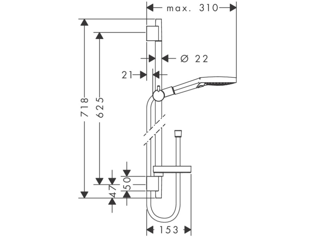 • sprchová tyč, dĺžka 718mm, priemer tyče 22 mm. Rozstup otvorov: 625mm.