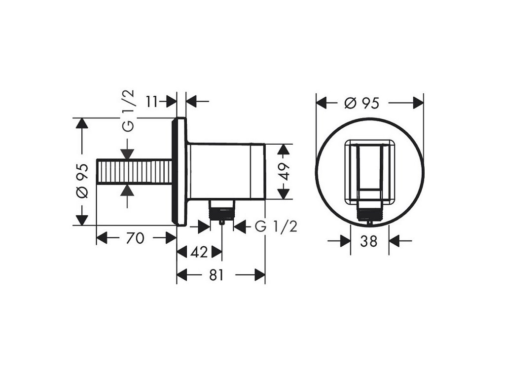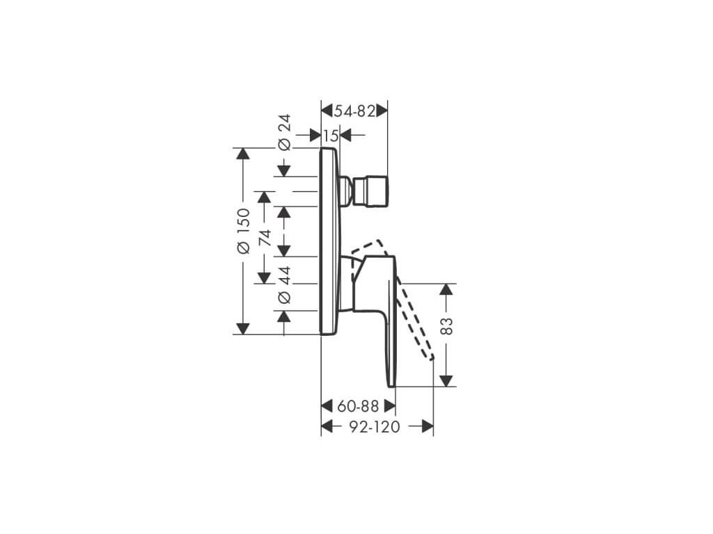 • hadicová prípojka s držiakom ručnej sprchy FIXFIT S, rozeta priemer 95mm