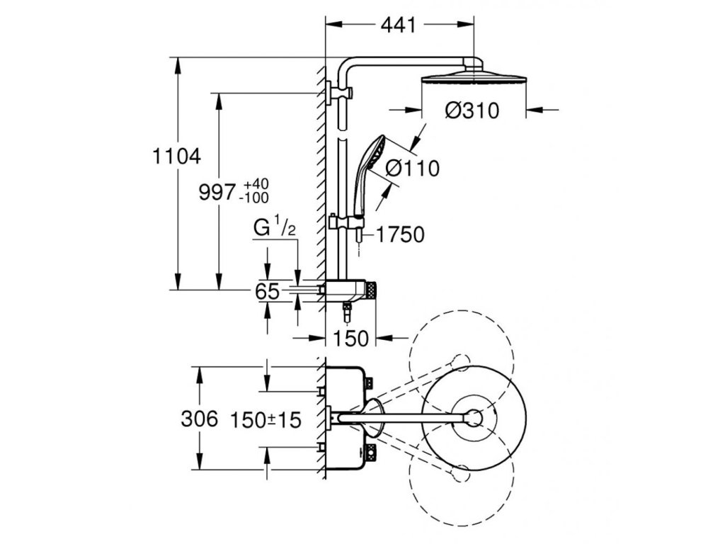• hlavová sprcha Rainshower SmartActive, s bielou spodnou časťou sprchy, o 310 mm, so sprchovými prúdmi Grohe PureRain, ActiveRain.