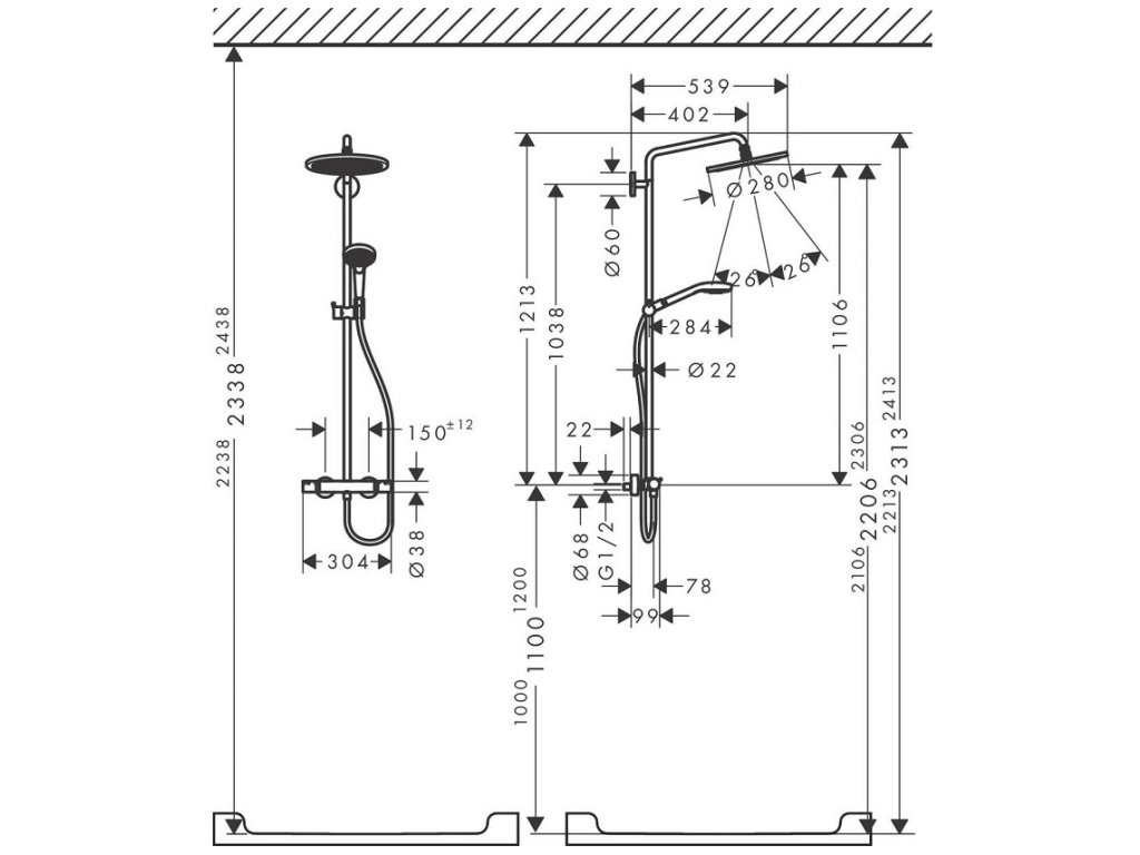 Sprchový termostatický systém Showerpipe 280 značky Hansgrohe sa skladá z nasledovných artiklov: