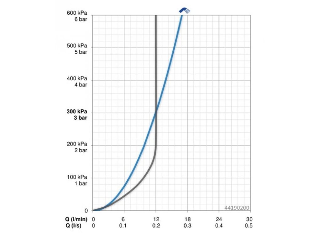 Prietok pri tlaku 3 bary: 12 l/min. Prietok pri tlaku 3 bary (s ovládačom prietoku): 12 l/min.