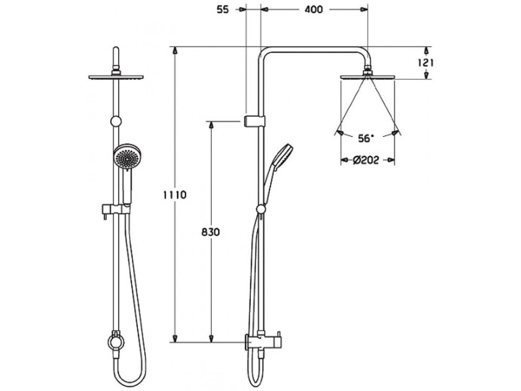 • hlavová sprcha s otočným kĺbom, o 202 mm.