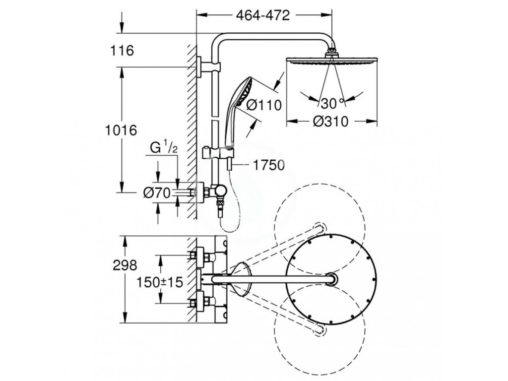 Sprchový termostatický systém pozostáva z nasledovných súčastí: