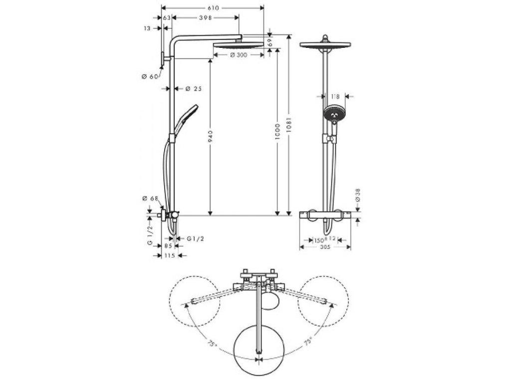 Sprchový systém RAINDANCE SELECT S s termostatom, hlavica 300mm