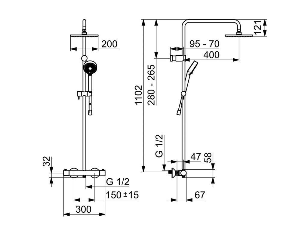 • stenová sprchová termostatická batéria