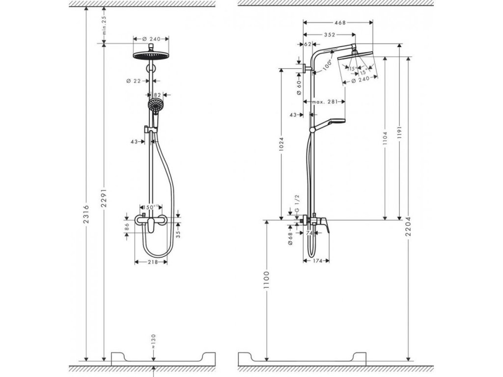 Sprchový systém CROMETTA S Showerpipe, stenová batéria, hlavica 240mm