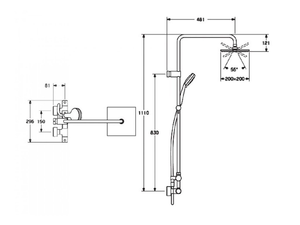 • hlavová sprcha 3-polohová, hranatá - 200x200mm