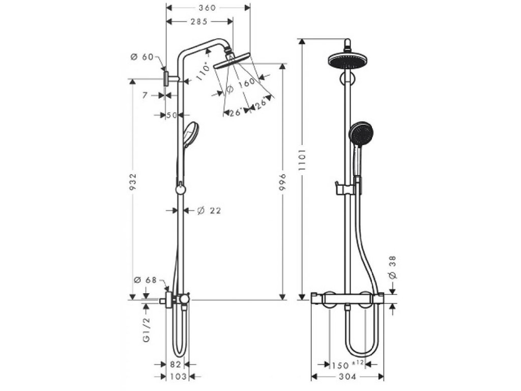 Sprchový systém Showerpipe CROMA 160 s termostatom ECOSTAT Comfort