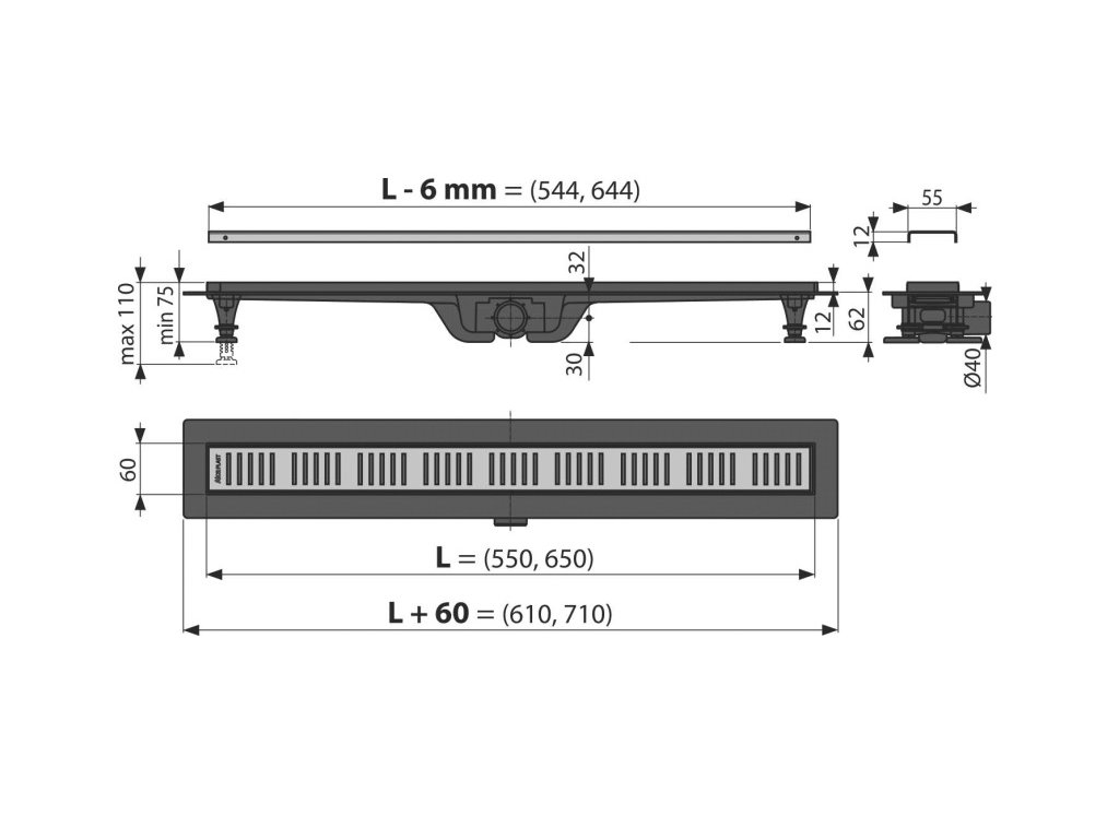 Celková stavebná výška: 75 – 110 mm