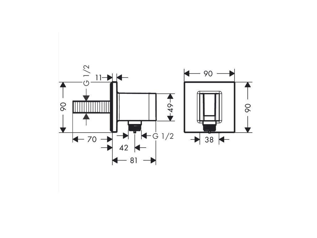 Pevná stenová prípojka na sprchovú hadicu s držiakom ručnej sprchy, FIXFIT E značky Hansgrohe.