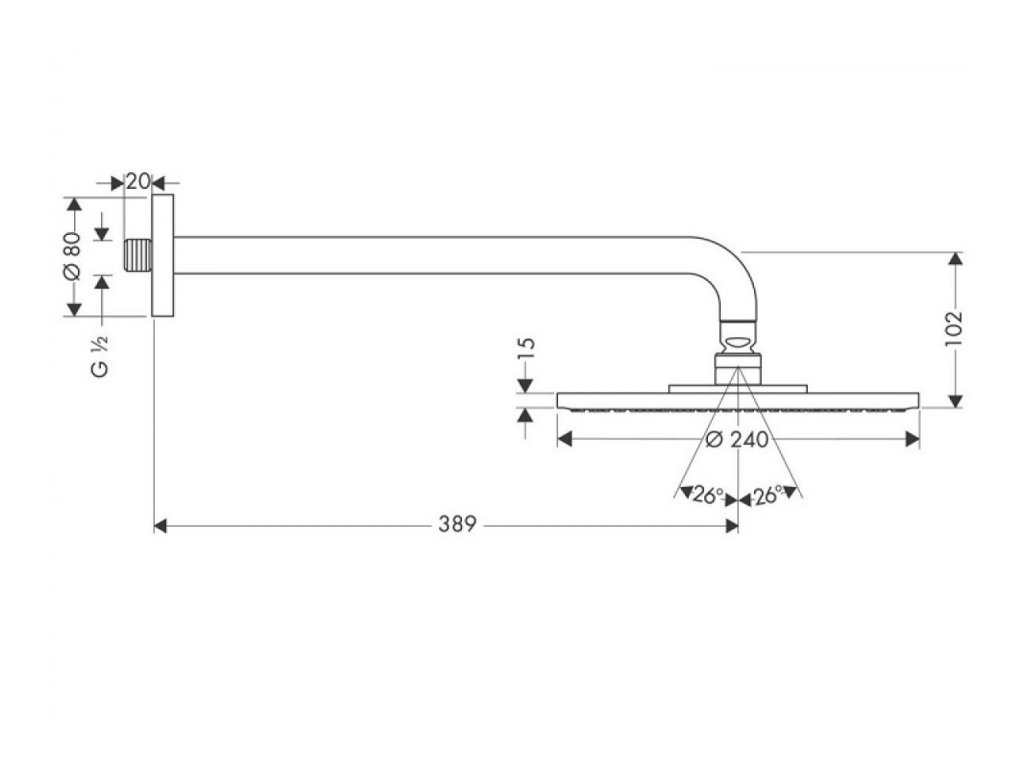 Veľkosť sprchového modulu: 240 mm. Dĺžka ramena: 390 mm.