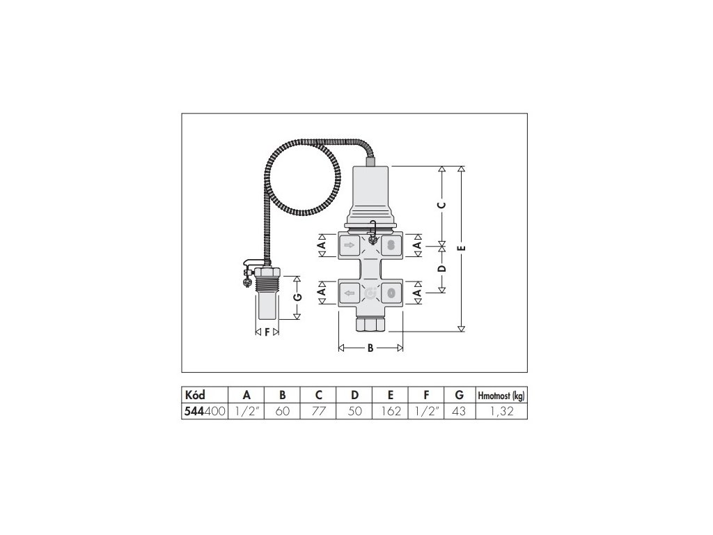 Teplotný bezpečnostný ventil, PN 6, T = +5 až +110 °C