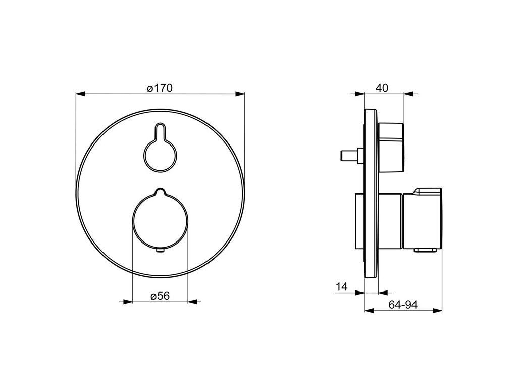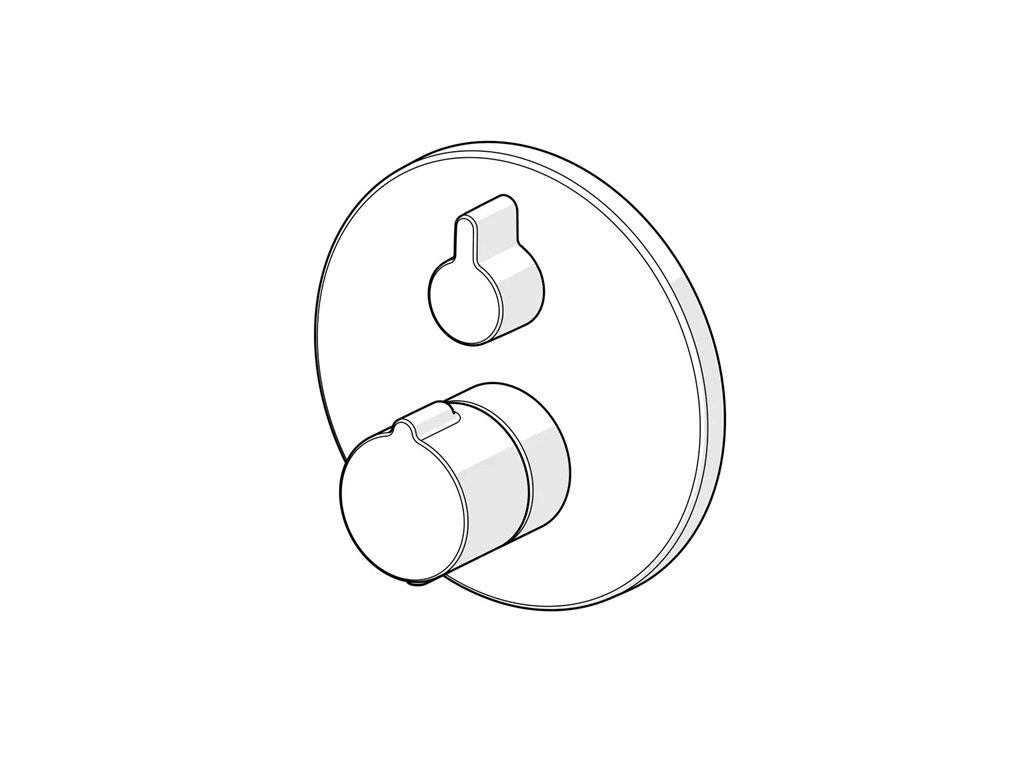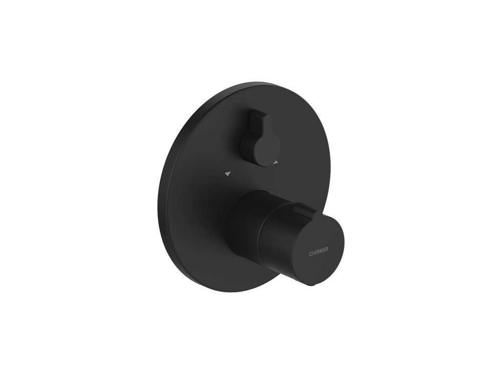 HANSAHOME - termostatická vaňová podomietková batéria, sada pre konečnú montáž. Určená pre dve odberné miesta. S rukoväťou pre reguláciu teploty vody a rukoväťou pre reguláciu prietoku. vody. S otočným prepínačom. Rozeta je okrúhla.