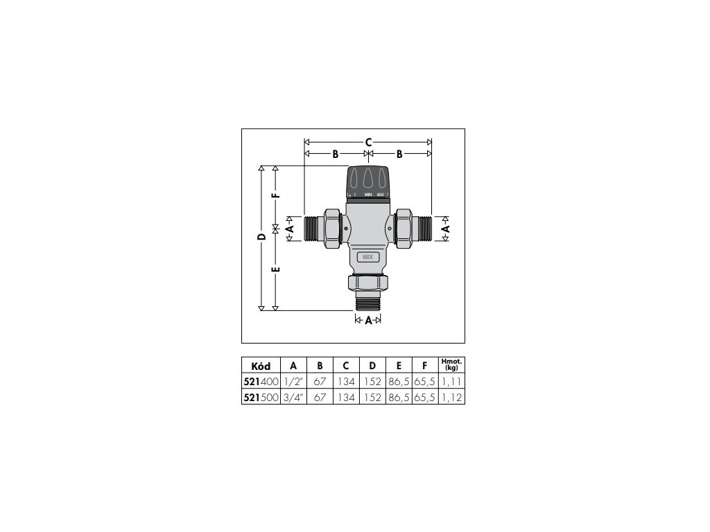 Termostatický zmiešavací ventil 3/4", 30-65°C, PN 14