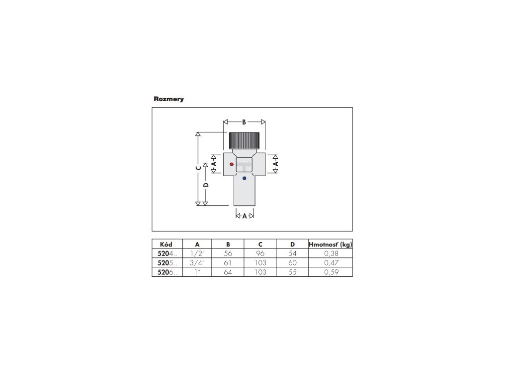 Termostatický zmiešavací ventil 3/4", 40-60°C, PN 10