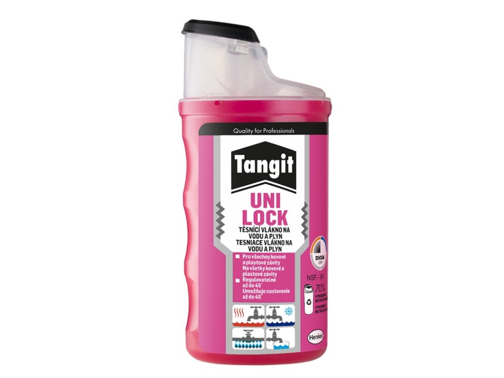 Univerzálna polyamidová niť Tangit Uni-Lock značky HENKEL, pokrytá internou ochrannou pastou, je zabalená v ergonomicky vhodnom obale z plastu, určená je na utesňovanie závitov potrubia. Vhodná aj na tesnenie potrubia na pitnú vodu a plyn. Poskytuje okamžité utesnenie ihneď po namontovaní.
