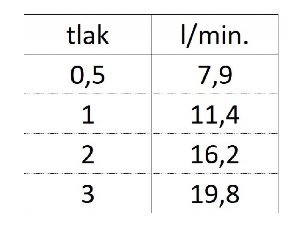 Prietok meraný pri tlaku 3 barov: 19,8 l/min.