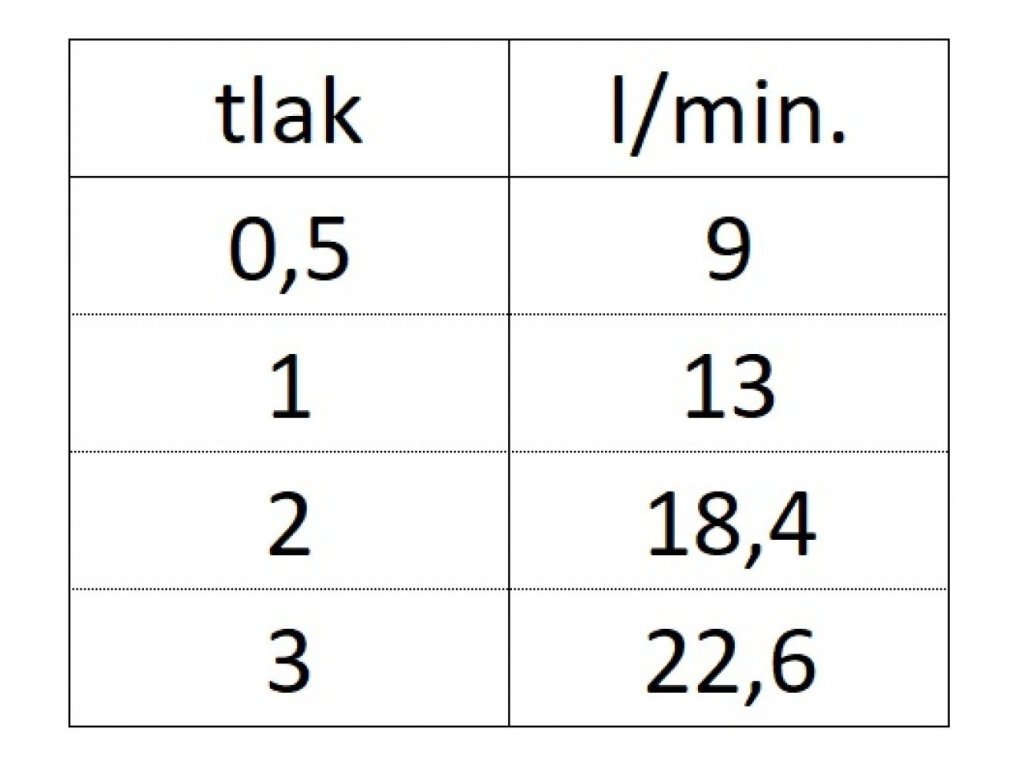 Prietok meraný pri tlaku 3 barov: 22,6 l/min.