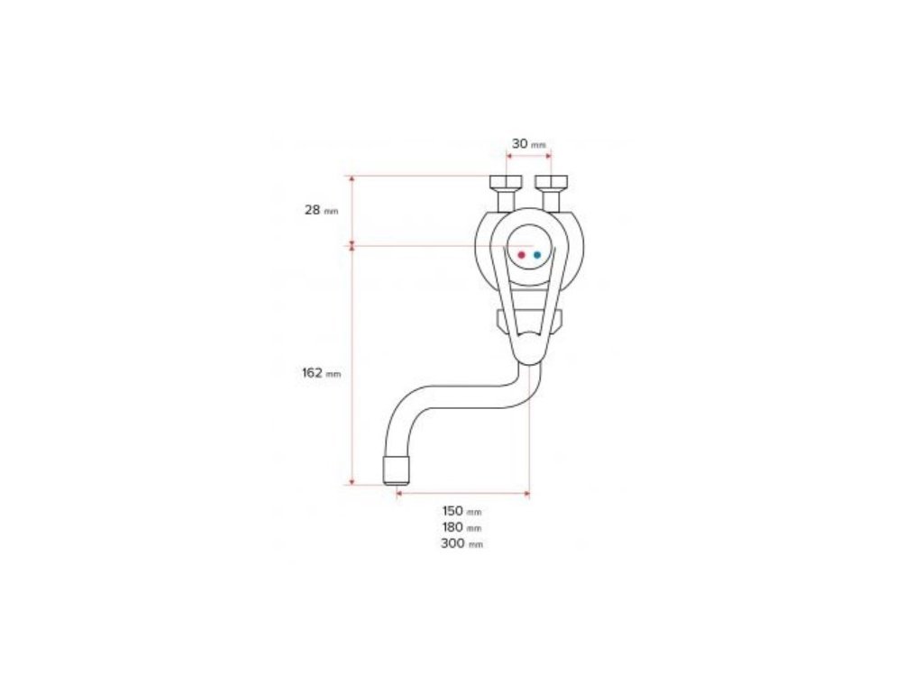 Trojcestná nízkotlaková stenová vodovodná batéria pre ohrievače PM, s pákovým ovládaním. Vhodná k drezom či umývadlám.