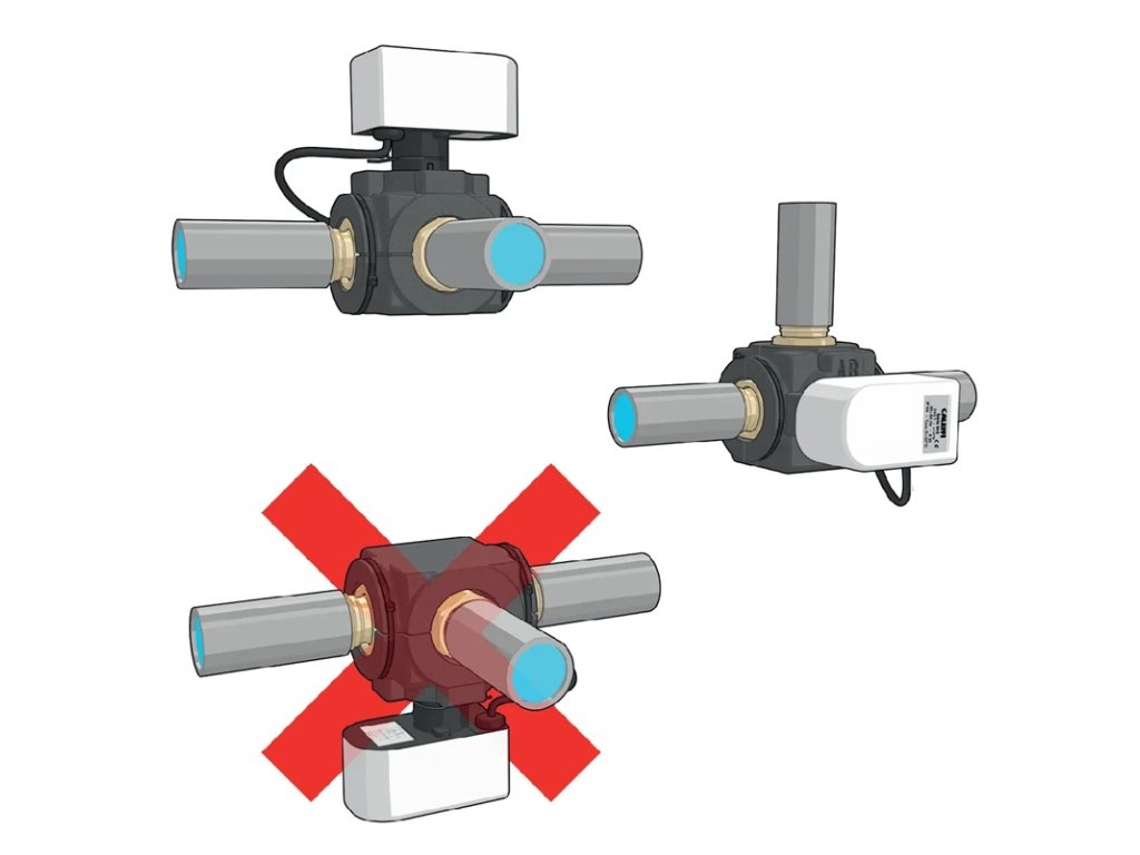 Trojcestný guľový ventil, servopohon, prevádzkový čas 40 s, 90°rotácia