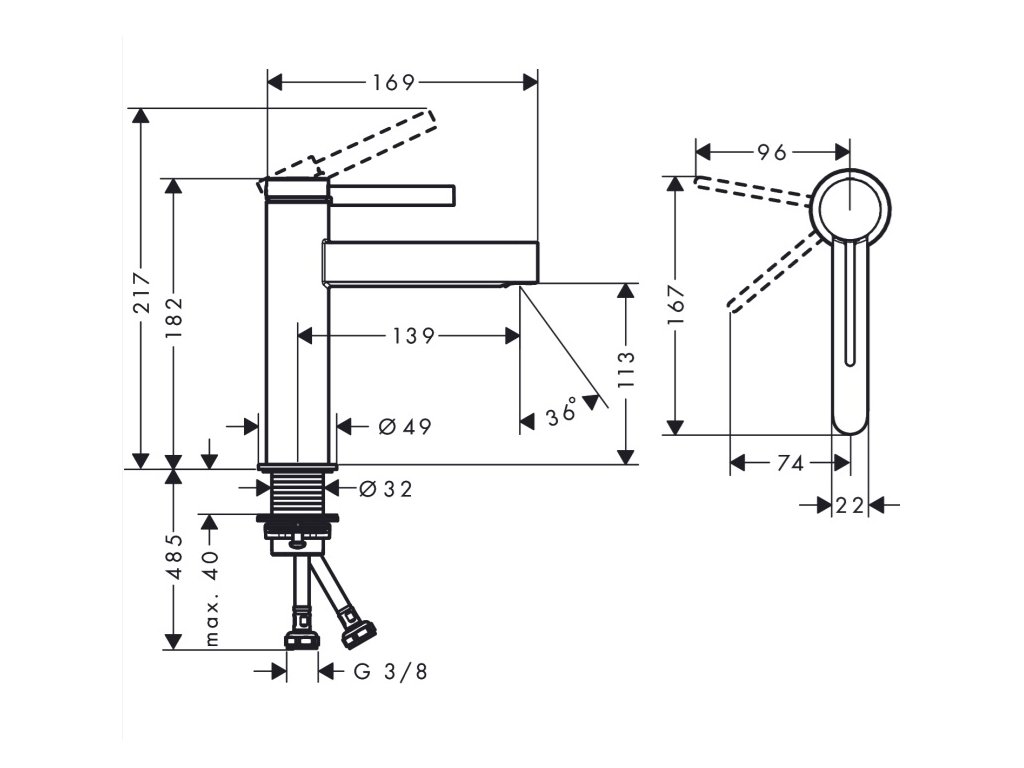 Umývadlová stojanková vodovodná batéria FINORIS značky Hansgrohe. S odtokovou súpravou s tiahlom, G 1¼.